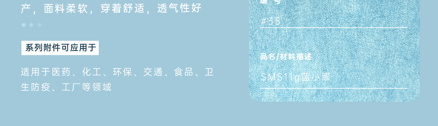 產(chǎn)品用途:該款布料為紡粘聚丙烯無紡布,可提供優(yōu)異的液體和防塵保護(hù),可用于圓帽生產(chǎn),面料柔軟,穿著舒適,透氣性好