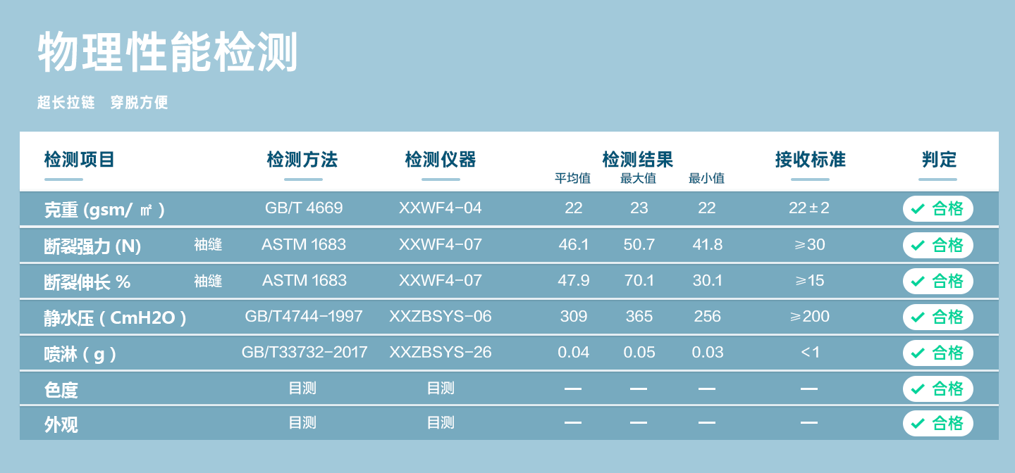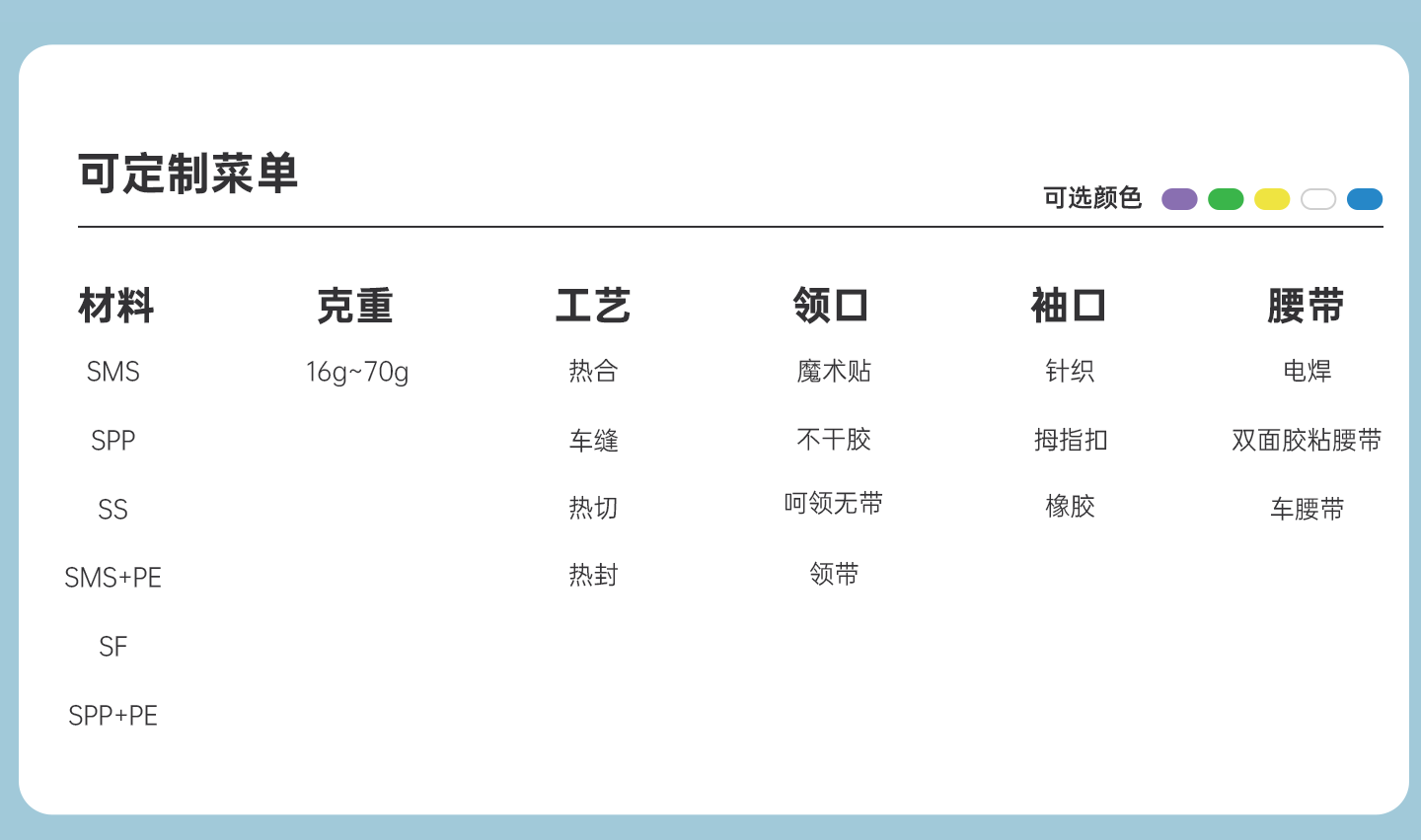 工藝:熱合、橡筋袖口、套頭式、有后背、點焊腰帶