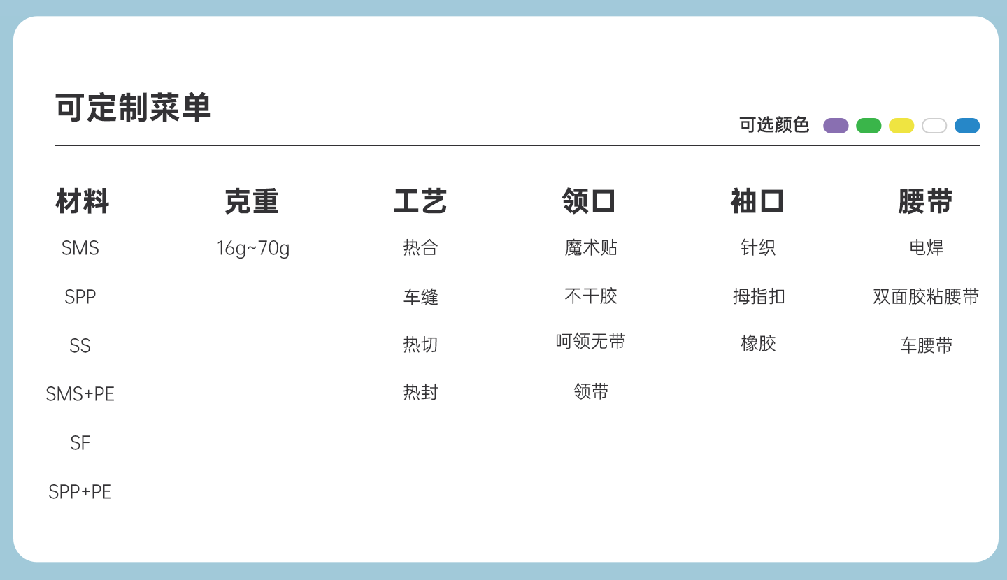 工藝:熱合、拇指扣袖口套頭式、無后背、自身腰帶